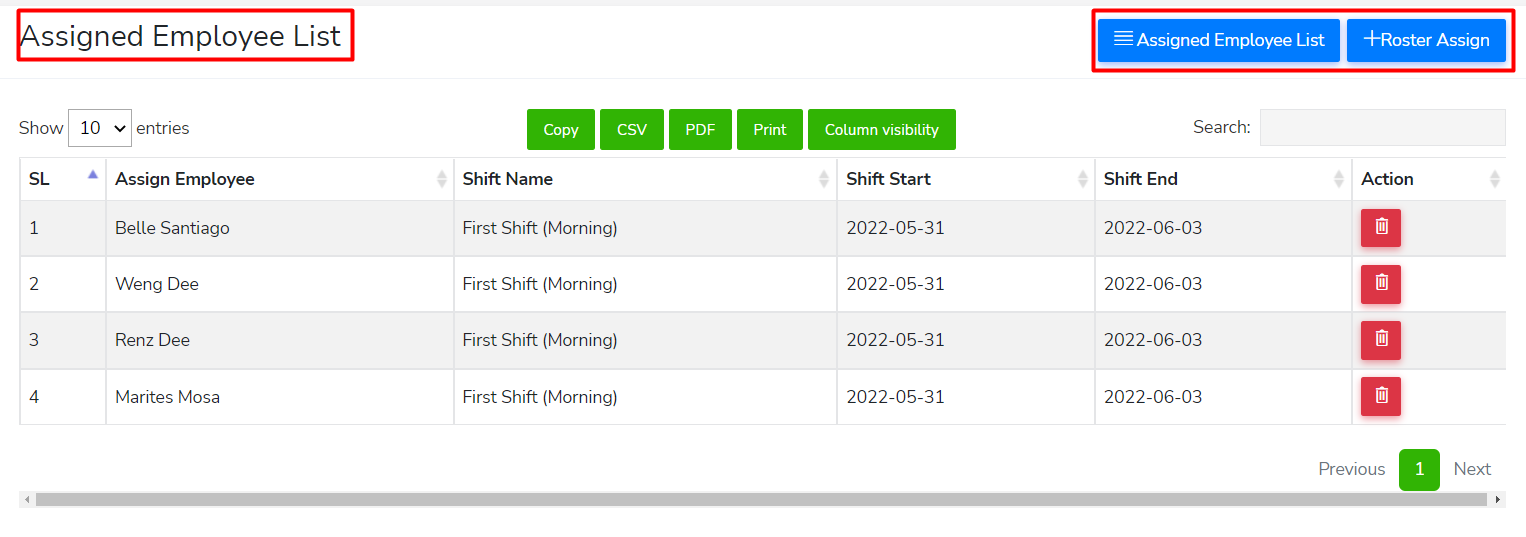 Step 3: Next, proceed to "Assigned Employee List" then click "+Roster Assign" to assign a Roster to an "Employee"