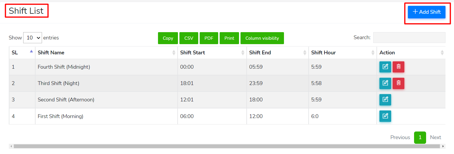 Step 1: User must set first the "roster" of the employees to avoid conflicts of schedules/tasks/shifts. To set the roster, proceed to "Shift List" > Add first a "+Shift" name, shift start, shift end, and shift hour.