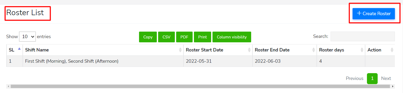 Step 2: Proceed to "Roster List" to create a "Roster" and tag the created "Shift".